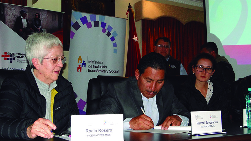 La viceministra de Inclusión Social, Rocío Rosero, solemnizó la conformación de las mesas técnicas de Misión Ternura en Colta y Penipe.