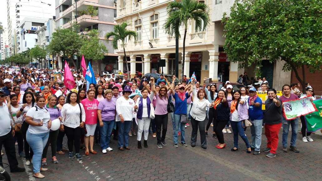 En una convocatoria de cerca de 800 personas la marcha “Dejando Huella por Una Vida Libre de Violencia”, donde participaron: educadoras, técnicos, usuarios y organizaciones sociales recorrió la avenida 9 de Octubre hasta llegar a la Plaza San Francisco, donde se realizó el plantón convocado por el Ministerio de Inclusión Económica y Social (MIES) para conmemorar el Día Internacional por la No Violencia Contra la Mujer, este 25 de noviembre.
