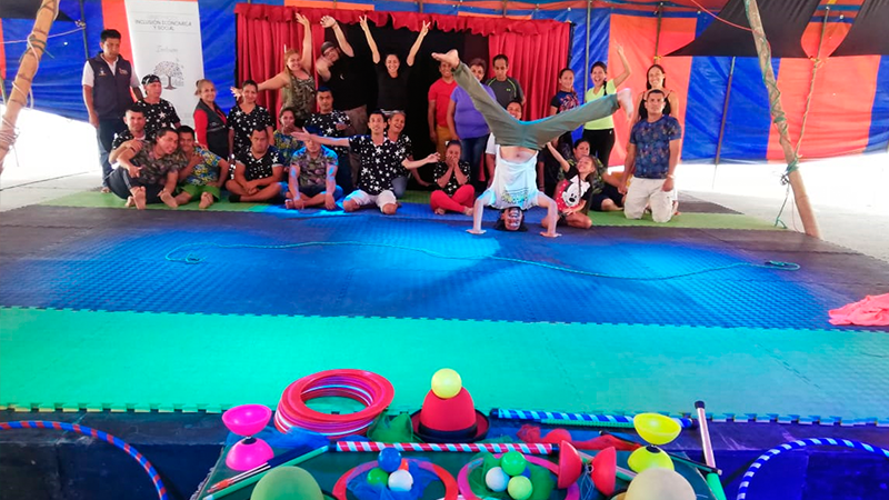 Con el propósito de fomentar la inclusión social de las personas con discapacidad, a través del arte, el MIES promueve el proyecto circo social.