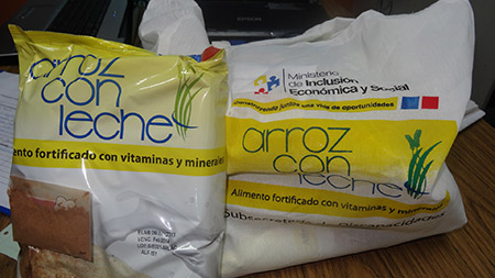 “Arroz con leche” es un alimento fortificado con vitaminas y minerales que está siendo entregado a las personas con discapacidad que son atendidas directamente por el MIES o por otras organizaciones, las cuales  han firmado convenios de atención y con la misión Joaquín Gallegos Lara, es decir que son responsables del cuidado de personas con discapacidad severa.