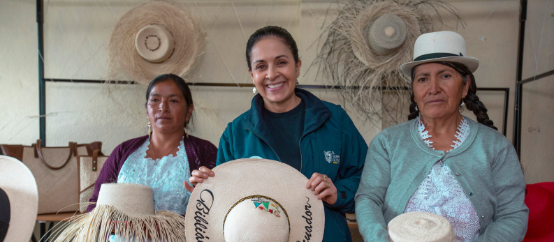 Finalizado el recorrido, Rocío de Moreno visitó a más de 70 mujeres de las parroquias urbanas y rurales del cantón Biblián, ellas integran la cooperativa Padre Rafael González y se dedican a elaborar sombreros de paja toquilla, una tradición que heredaron de sus antepasados.