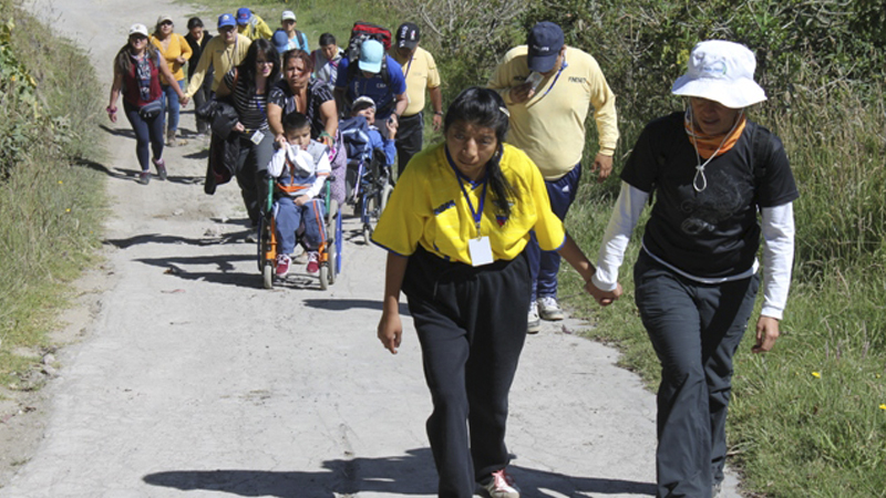 Personas con discapacidad y voluntarios realizaron caminata hasta la cascada de Guagrapamba