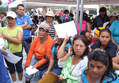 Aproximadamente 20 técnicos atendieron a alrededor de 500 personas en la Plaza Quitumbe al Sur de Quito. La convocatoria para la Actualización de Datos concentró a beneficiarios del Bono de Desarrollo Humano (BDH), así como también a beneficiarios del Bono Joaquín Gallegos Lara, a estos últimos se les realizó la entrega del Suplemento Alimenticio “Arroz con Leche”, mismo que por ser un alimento altamente nutritivo, energético y de fácil digestión es ideal para complementar una alimentación sana y equilibrada. La jornada que se cumplió en la Plaza Quitumbe concluyó aproximadamente a las 16:00.