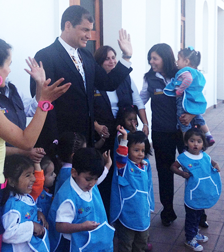 Presidente Correa grabó el programa Sí Bebé con los niños del CIBV Manuela Cañizares