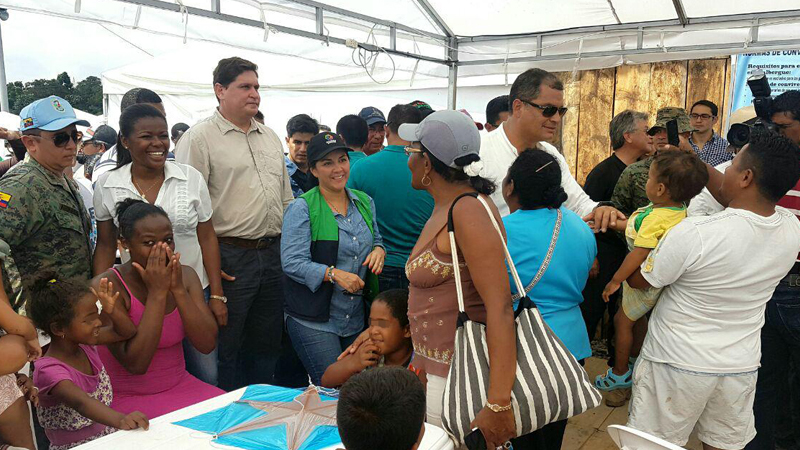 Presidente Correa y ministra Larrea recorrieron albergues en Muisne