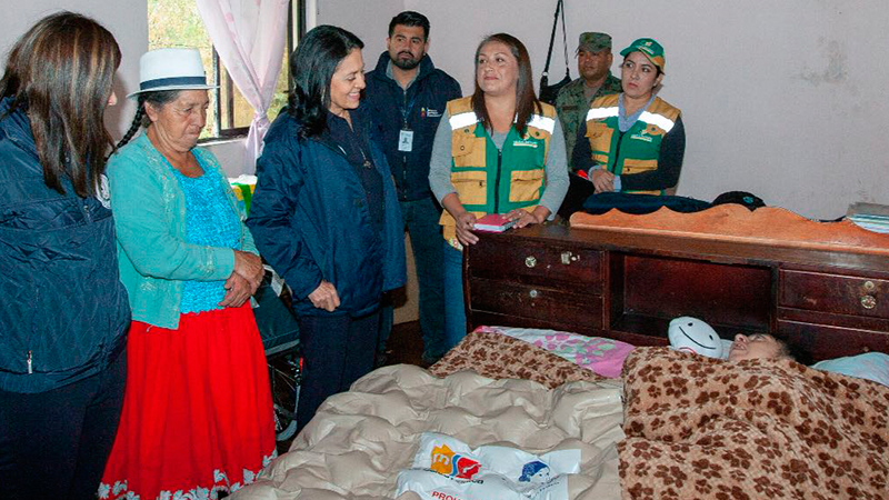 A este hogar, ubicado en Chordeleg en Azuay, llegó Rocío de Moreno, presidenta del Comité Plan Toda una Vida; Isabel Maldonado, Secretaria Técnica de esta entidad, brigadistas Las Manuelas, Médicos del Barrio, técnicos del Ministerio de Inclusión Económica y Social (MIESS), y varios ministros de Estado para brindar apoyo integral a Diana y su familia.