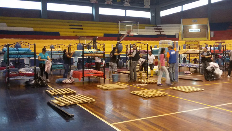 Hasta el momento 80 personas, que resultaron damnificadas por las inundaciones en Tena, están el albergue activado en el coliseo de la ciudad de Tena.