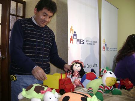 Mediante la modalidad de Feria Inclusiva, más de 65 000 dólares invirtió el Gobierno Nacional por intermedio del Ministerio de Inclusión Económica y Social (MIES) en Tungurahua para la adquisición de 14 064 juguetes artesanales, que serán entregados en diciembre a los niños y niñas que asisten y reciben los servicios de Desarrollo Infantil Integral en los Centros Infantiles del Buen Vivir (CIBV) y Creciendo con Nuestros Hijos (CNH).