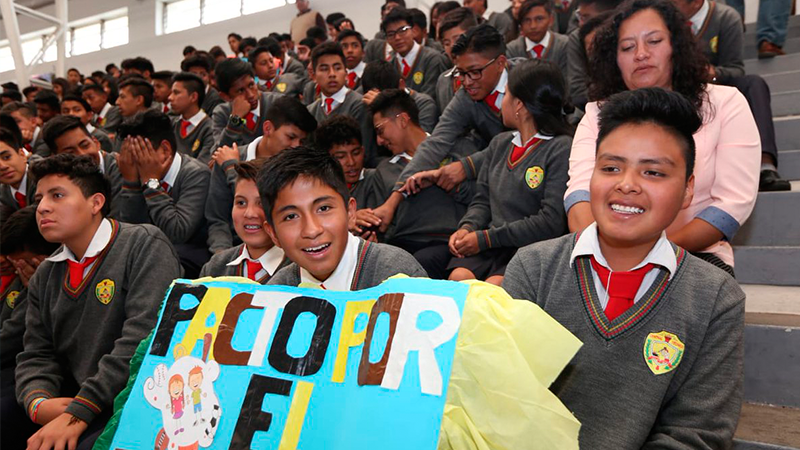 Jimmy Cacuango, estudiante de segundo año de bachillerato del colegio Central Técnico, se encargó de dar lectura a la declaración de niñas, niños y adolescentes que busca conscienciar en la sociedad la necesidad de contar con áreas deportivas libres de violencia. “Queremos ser parte de este pacto y estaremos pendientes de sus resultados”, dijo.