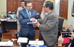 (Foto: Mario Puruncajas (dcha.), presidente de la Federación Nacional de Ciegos del Ecuador, entregó las propuestas de emprendimientos a los representantes del MIES y la SETEDIS.)