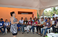 La bienvenida estuvo a cargo de Roxana Arteaga, coordinadora zonal 4 del MIES (Manabí y Santo Domingo de los Tsáchilas). Durante la jornada que se cumple desde este martes, 18 de agosto, se instalaron seis mesas de trabajo, en las que técnicas y técnicos compartieron sus experiencias del trabajo diario y la aplicación de los conocimientos adquiridos en los talleres anteriores realizados en Cuenca y Guayaquil.