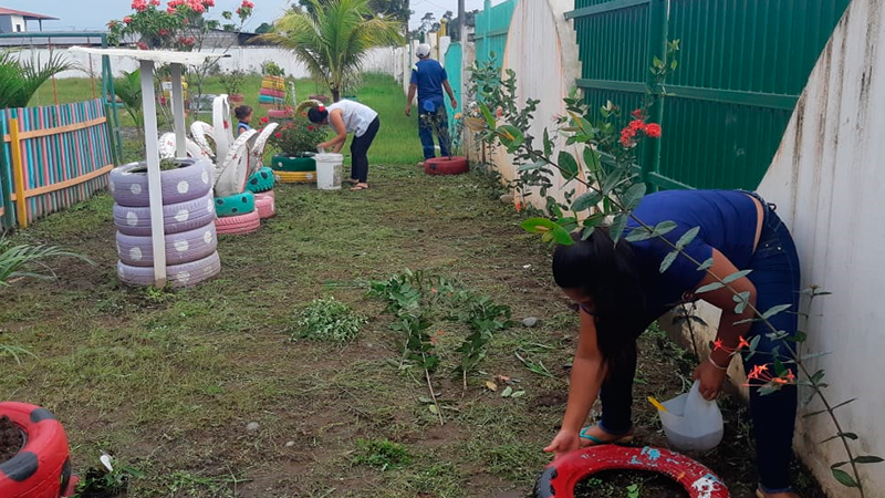 Madres y padres de familia participaron en las mingas de limpieza que realizó el Ministerio de Inclusión Económica y Social (MIES) en 26 centros de desarrollo infantil (CDI) y 96 unidades Creciendo con Nuestros Hijos (CNH) de la provincia de Orellana.
