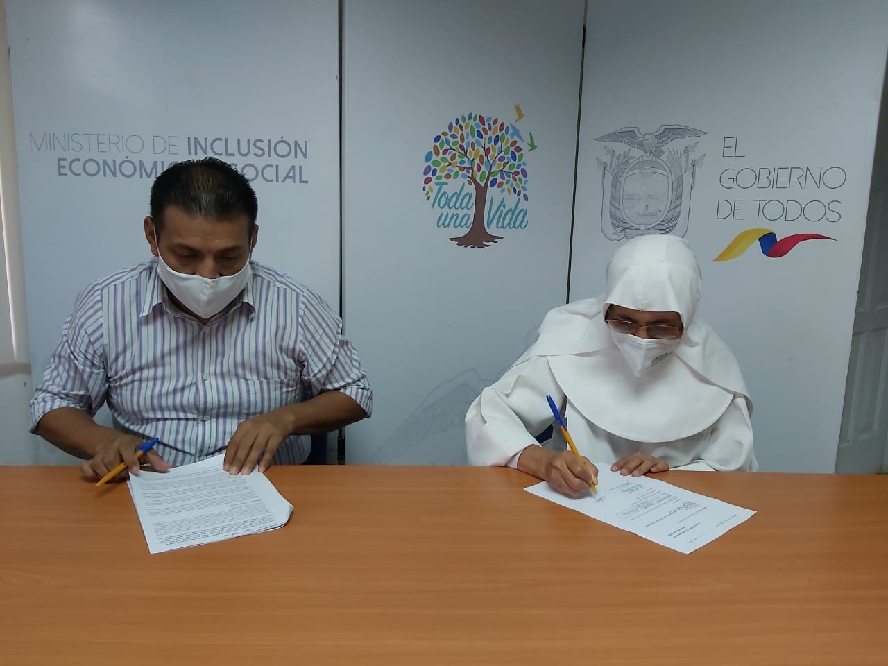 Este jueves 4 de junio, se realizó la firma de convenio de cooperación técnico- económico, entre el Ministerio de Inclusión Económica y Social (MIES) y la “Congregación de Hermanitas Nuestra Señora Purísima de Macas”, por un monto de 435.683 dólares. Esta acción, permitirá seguir atendiendo a 75 adultos mayores en el Centro Residencial Gerontológico del mismo nombre.