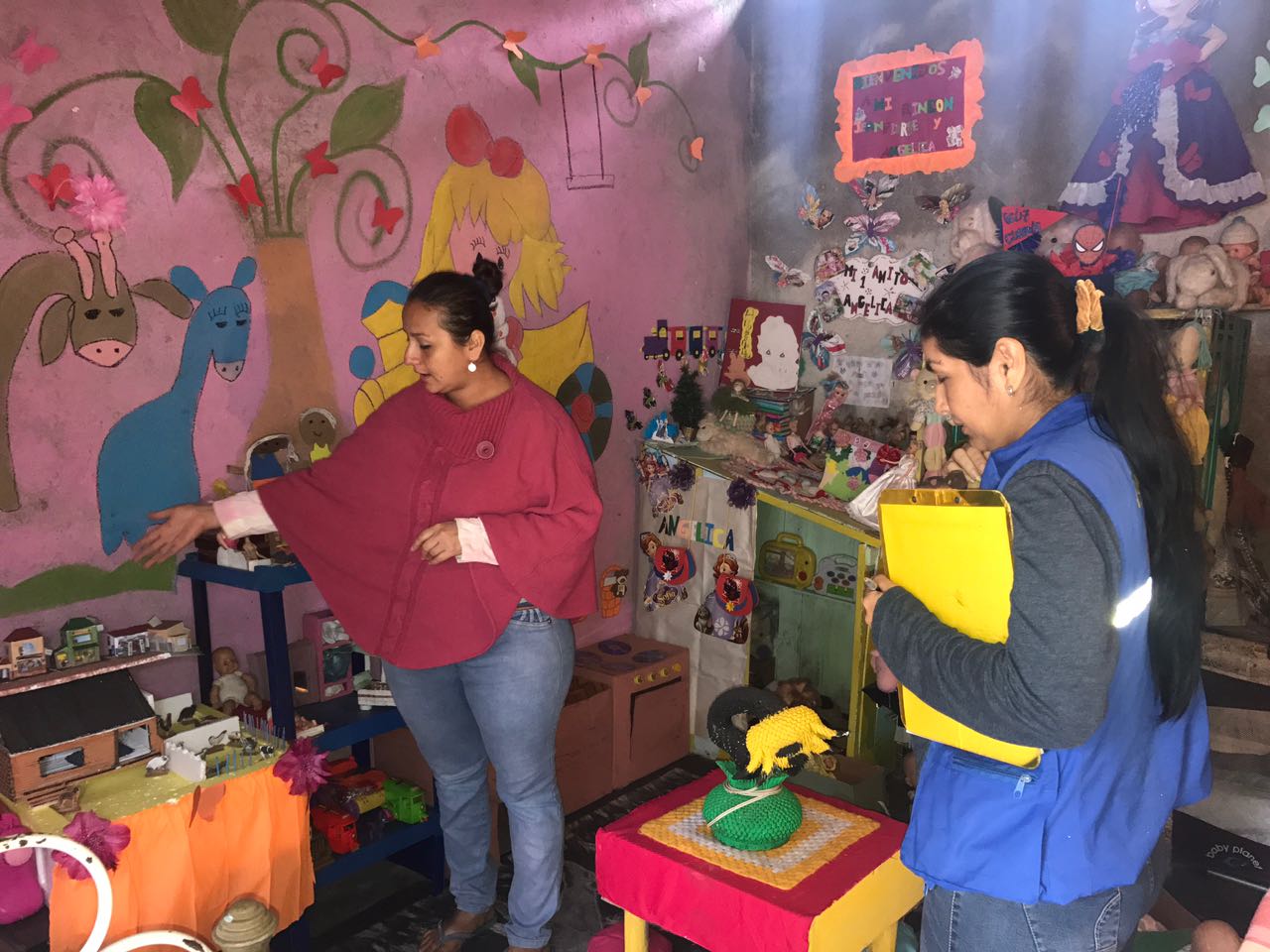Un equipo técnico del MIES y los educadores visitan los hogares de las niñas y niños que reciben clases de estimulación, califican la creatividad de la familia en el desarrollo de los juguetes que están en los rincones de lectura, música, hogar; motricidad fina y gruesa, los cuales deben estimular de acuerdo a la edad de cada infante.