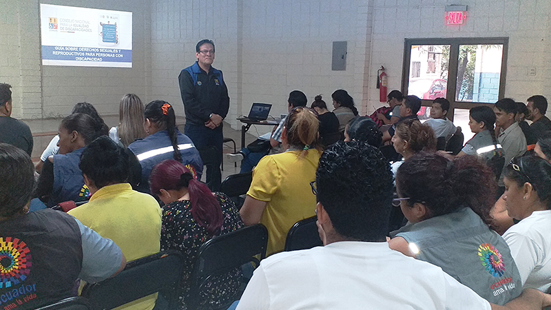 Un total de 50 técnicos del Ministerio de Inclusión Económica y Social (MIES) y de organizaciones cooperantes, participaron este 16 de abril en un taller de socialización impartido por el Consejo Nacional para la Igualdad de Discapacidades (CONADIS), denominado “Guía sobre derechos sexuales y reproductivos para personas con discapacidad”.