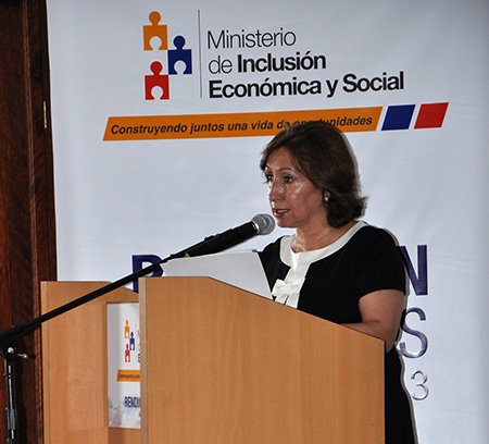 En su Intervención la secretaria de Estado destacó que la  tarea principal del  (MIES), durante este año ha sido trabajar en la  reestructuración institucional y diseñar las políticas públicas de protección social destinadas  a combatir la pobreza y potenciar las capacidades de la población y su corresponsabilidad en su propio proyecto de vida en forma efectiva.