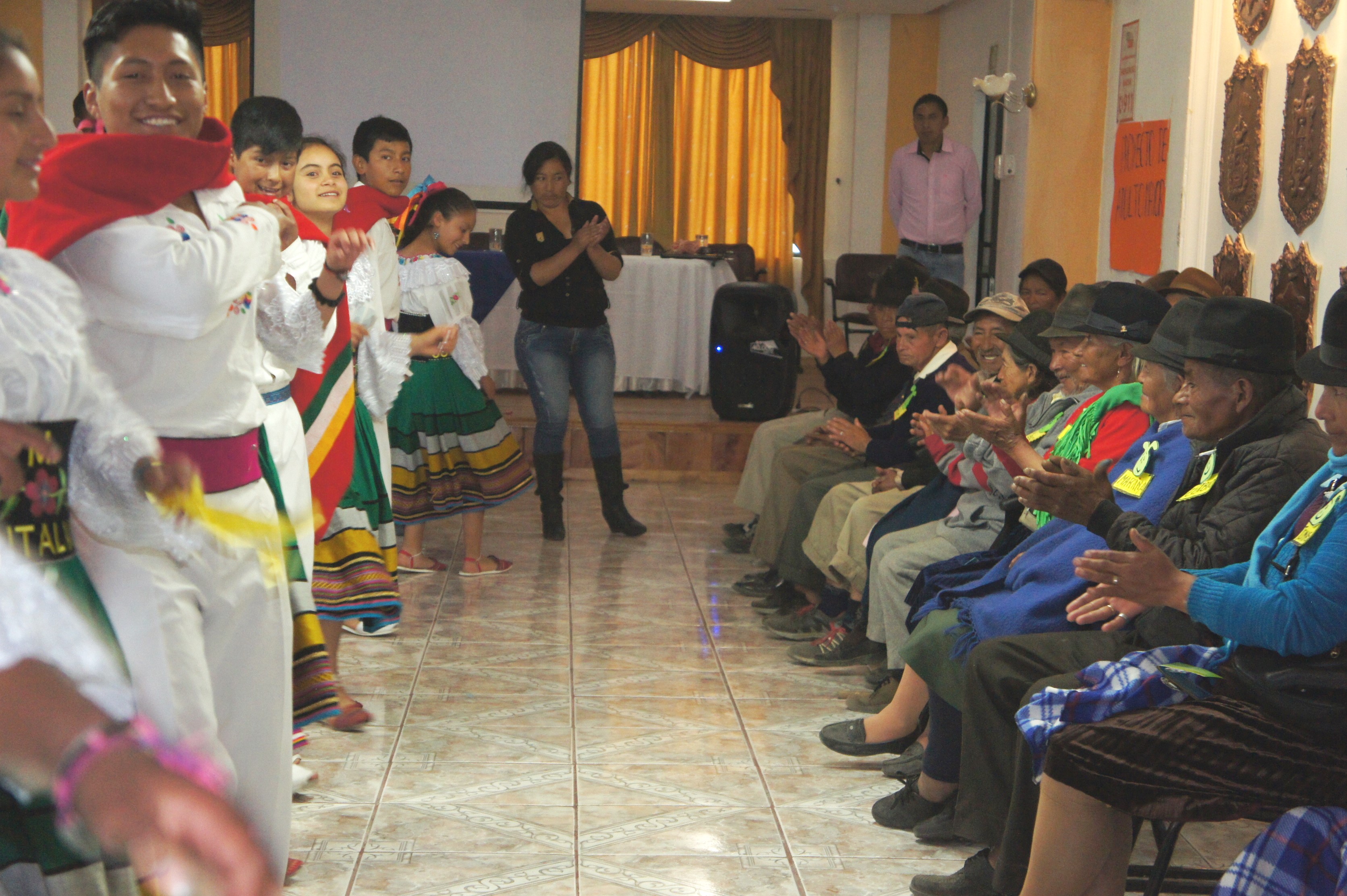 Jóvenes del Grupo de Danza de la Unidad Educativa Juan Montalvo comparten con adultos mayores del Centro de Atención Integral en Sigchos.