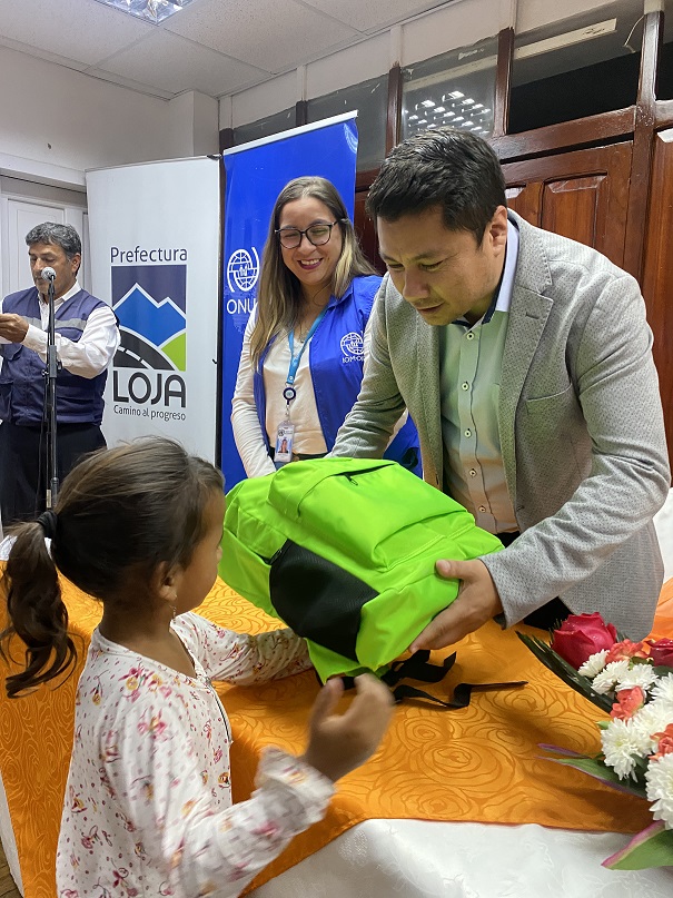 70 usuarios del servicio de Movilidad Humana y 30 de Erradicación Progresiva de la Mendicidad, que ejecuta el Ministerio de Inclusión Económica y Social (MIES), en convenio con la Prefectura de Loja, recibieron kits educativos, con el apoyo de la Organización Internacional para las Migraciones (OIM).