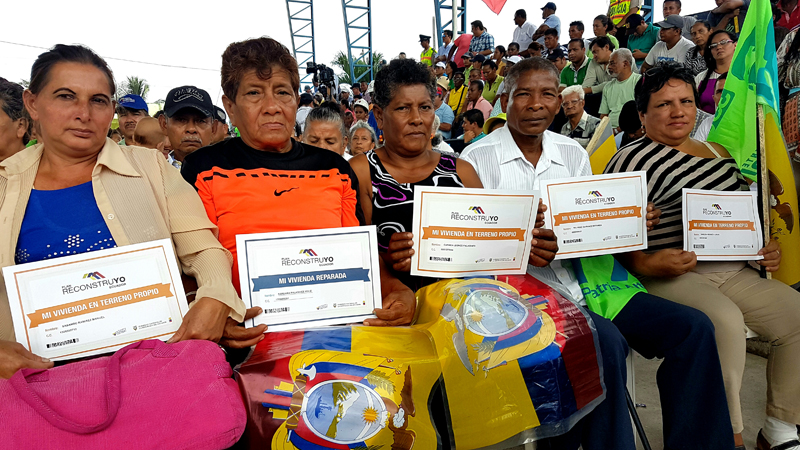 Acompañando al Vicepresidente de la República, Jorge Glas, la Ministra de Inclusión Económica Y Social, Lídice Larrea, participó en la reunión de trabajo del Comité de Reconstrucción de las zonas afectadas por el terremoto, que se efectuó este viernes 1 de julio en Quinindé. La Ministra Larrea participó en primera instancia en la entrega de incentivos para viviendas a damnificados del terremoto y luego en una reunión ordinaria multisectorial.