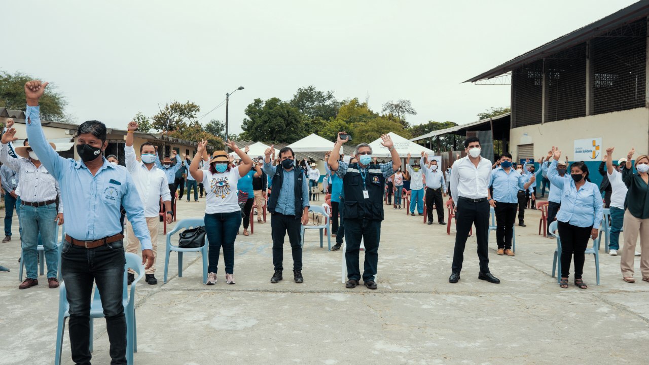 En el cantón Daule se realizó hoy la socialización del Programa “Siembra por Contrato”, programa que tiene como objetivo la reactivación económica del agro ecuatoriano por medio de un convenio entre el Gobierno Nacional, a través del Instituto Nacional de Economía Popular y Solidaria, y Cervecería Nacional del Ecuador. Esta iniciativa de cooperación interinstitucional buscará generar alrededor de 20 mil empleos directos y 60 mil indirectos. El acto contó con la presencia de Otto Sonnenhlzner, Vicepresidente de la República, Iván Granda, ministro de Inclusión Económica y Social, Andrés Briones, director general del Instituto Nacional de Economía Popular y Solidaria, Martha Gonzales, vicepresidenta legal y de asuntos corporativos de Cervecería Nacional.