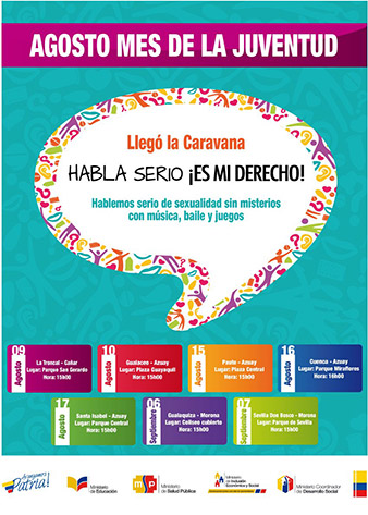 La Caravana Habla Serio difunde los derechos sexuales y reproductivos a través de la educomunicación. Facilitadores mantendrán un acercamiento con los jóvenes para abordar estos temas de gran importancia en esta etapa de la vida. Los asistentes disfrutarán además de un show artístico musical. En la Zona 6 la Caravana hará una parada en los cantones: La Troncal, Gualaceo, Paute, Cuenca, Santa Isabel, Gualaquiza y Sevilla Don Bosco. Las caravanas del ENIPLA son coordinadas por el Ministerio Coordinador de Desarrollo Social, el Ministerio de Inclusión Económica y Social, el Ministerio de Educación y el Ministerio de Salud Pública