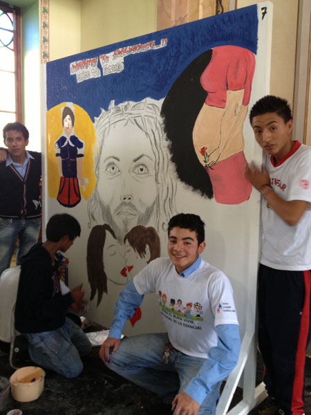 Mientras en el pabellón 3 del Centro de Convenciones, 700 jóvenes debatían sus inquietudes, a la par se desarrollaba el I Concurso de Pintura Urbana YO SI INCLUYO. A esta convocatoria se presentaron 11 colegios entre ellos el Santo Domingo de Guzmán, Andrés Bello, Colegio Montufar, Hipatia Cárdenas de Bustamante, José de la Cuadra, Emilio Uzcátegui, Luciano Andrade Marín, Gran Colombia, Liceo Municipal Fernández Madrid, 24 de Mayo, entre otros , 5 representantes de cada colegio plasmaban su pintura en varios murales colocados al interior de la Capilla del Centro de Convenciones.