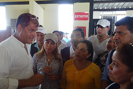 El Presidente Correa, junto a la Ministra Larrea, recorrieron zonas como “Solbrisa 1 y 2”, donde pudieron observar la afectación estructural que sufrieron varias viviendas. Después se trasladaron hasta el albergue MIESPERANZA donde permanecen familias damnificadas y que reciben atención del MIES y otras instituciones de Estado.